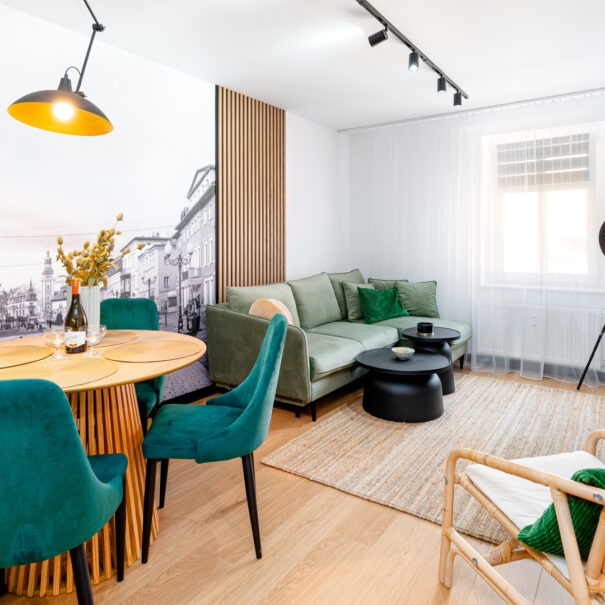 Nowoczesny apartament w centrum Cieplic, blisko Term Cieplickich i głównych atrakcji. Komfortowe wnętrze idealne na wypoczynek o każdej porze roku.